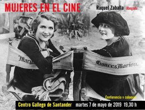 El  7 de mayo a las 19,30 h. continuaremos el ciclo de conferencias sobre cine en el centro Gallego de Santander, con la conferencia y coloquio «Mujeres en el cine» sobre la intervención de las mujeres en la industria cinematográfica y la imagen que se proyecta de la mujer en el cine según las diferentes épocas y géneros. Nos vemos en la sala….