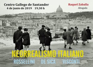 El 4 de junio terminamos el ciclo de cine 2018-2019 en el Centro Gallego de Santander, con la conferencia Neorrealismo italiano, deteniéndonos en los maestros Luchino Visconti, Roberto Rossellini y Vittorio de Sica.